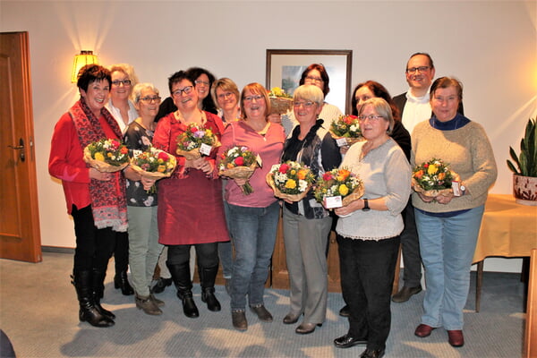 Mit dem silbernen Kronenkreuz für über 10 jährige Mitarbeit wurden Vera Haug-Dörzbach, Sonja Sprenger, Rosamunde Jung, Margarete Frank, Erika Hofstetter, Sabine Mayer, Hannelore Zipf, Waltraud Sorg, Marina Mader und Carla Rossi ausgezeichnet. Für 20 Jahre Sozialstation wurde Uta Achatz geehrt, die bereits Trägerin des silbernen Kronenkreuzes ist.